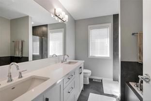 133 Caspian is a 2021-built home in immaculate condition on a 4,788 sqft laneway corner lot w/detached double garage. The welcoming foyer opens to a generous great room with 9ft ceilings, a bright living area with cozy gas fireplace and a dining space large enough for all gatherings. The chef’s kitchen boasts premium stainless appliances, quartz counters, ceramic backsplash, slow-close cabinetry and large island perfect for entertaining. A powder room and mudroom lead out to the fully fenced, extra-wide backyard w/ample green space and gardening/storage potential. Upstairs features 3 spacious bedrooms, laundry, and 2 baths, including a primary bedroom with huge walk-in closet and luxurious 5-piece ensuite w/dual vanities, quartz counters, walk-in shower and soaker tub. The finished basement adds a massive 20 × 13 ft rec/flex room, guest bedroom, full bath and storage. Mountain views, amenities a walk away and steps to trails. An exceptional family home in a sought-after neighbourhood.