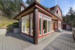 A private and and quiet view property in Central Saanich . Sitting on 10 Acres and backing on to Dean Park this is one of the highest elevation homes on the peninsula. With full Southern exposure boasting views as far as the Olympic Mountain Range, the Saanich Inlet and Cordova bay. Entertain with ease in the beautiful modern custom kitchen and enjoy a summer evening with family and friends on the large wrap around deck. This home offers 4 bedrooms, 4 bathrooms, a Den, office and plenty of dining and living space. Outside there is more than ample parking for cars, Boat, RV or Trailer. A large detached 2090sqft Garage/Coach house allows storage for up to 6 cars in heated comfort with plenty of space for motorbikes or other things. This garage could also be converted in to additional living space. A car collector or Hobbyists dream offering great value in a desirable location. Come and see the views, space, privacy and nature in this truly unique property.