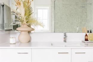 Display Home open Saturday and Sunday from 12 - 3, located at 3421 Harriet Rd. Move-in ready! Greyson is a brand-new community of naturally inspired family-sized townhomes by award-winning Abstract Developments. Located minutes from the amenity-rich Uptown Shopping District and the Galloping Goose trail, Greyson is perfectly positioned between the city’s outer limits and the downtown core for seamless connectivity within Victoria and beyond. This bright and spacious 4 Bed, 2.5 Bath home offers 1,545 sq ft of living space and an EV-ready, 2-car side-by-side garage. Interior features 9’ ceilings, generous windows and a welcoming main living area perfect for hosting friends and family. The beautiful kitchen features quartz countertops, a spacious island, shaker-style cabinets, a stainless-steel appliance package, a built-in full-height pantry and a desk. Enjoy two private outdoor spaces including patio space separated by lush landscaping and white picket fencing. Optional upgrade for AC available and a 10-year home warranty. Price + GST.