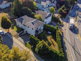 Enjoy sweeping ocean views from this bright and spacious 1992-built, 2-level family home. With over 1800 sq. ft. of living space, this 4-bedroom, 3-bath residence is warm and inviting, featuring generous rooms and a full-height lower level with kitchen and 2 bedrooms—ideal for extended family, guests, or inlaws. Highlights include built-in vacuum, workshop, double garage, ample parking, and private yard. The European-style kitchen blends function and charm with gas range, bay window dining area, and laminate flooring. The large living room features a gas fireplace with custom mantle, and the adjoining balcony is perfect for views toward CFB Esquimalt and the dockyards. Upstairs, the XL primary suite boasts walk-in closet and ensuite. Set on a corner lot in a vibrant neighbourhood, this home is near parks, schools, shopping, and waterfront—just minutes from base and dockyard access. Convenience in a location ideal for families and professionals alike.