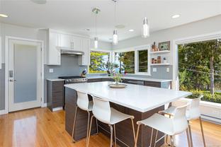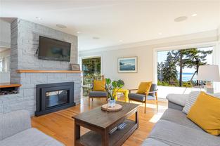 Welcome to 8650 Emard Terrace, a professionally renovated 4-bed/2-bath home w/ sweeping OCEAN & ISLAND VIEWS over Haro Strait & beyond. Set on a private 0.51-acre lot, in North Saanich’s desirable Bazan Bay neighborhood, this property is a daily invitation to enjoy our West Coast natural beauty. The main level was transformed by discerning trades, creating a warm, modern aesthetic. Oak hardwood flooring throughout, paired w/ herringbone tile & craftsman millwork. The custom kitchen features lacquered birch ply cabinetry, quartz countertops & center island, all oriented to maximize the stunning ocean views. Step outside to a west-facing wrap-around deck w/ welded aluminum railings, gazebo seating & hot tub area, ideal for entertaining or quiet evenings under the stars. Great RV parking, backyard studio w/ power & water, raised garden beds...the list goes on. Minutes to Sidney, YYJ, BC Ferries, local parks, trails & the Panorama Rec Centre.
