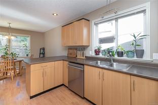 **OPEN SAT 1-2:30** Follow your dream, home. This quality Bear Mountain home sits at the end of a no through road. An ideal floor plan which offers spacious main level living with 3 bedrooms upstairs. The primary bedroom offers vaulted ceiling and a walk through closet leading into the cheater en-suite. A usable backyard backs onto green space for privacy that you won't normally find in this price range. Other features include a natural gas fireplace, gas hook ups for the stove & BBQ, programmable irrigation system, roughed in central vac, laundry/mud room, covered front entrance and west facing rear patio. It also includes a new a dishwasher and microwave, and newer washing machine and h/w tank. Lakewood Elementary is within walking distance. Costco, pubs/restaurants and other shopping, as well as Thetis Lake are all only minutes away. A home at this price in this area won't last long. Book your showing today!