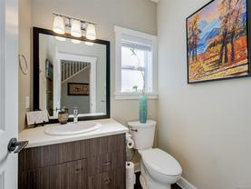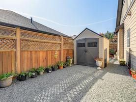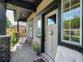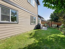 Stylish Family Home with Exceptional Outdoor Living. Welcome to a home that blends comfort, practicality, and style. Inside, the main living area impresses with soaring vaulted ceilings & natural light that fills the room. A gas fireplace creates a cozy focal point, while the flowing design connects the kitchen, dining & living spaces with ease. The kitchen is ideal for gatherings & from the dining area you step directly onto your patio & covered area—perfect for year-round barbecues & quiet evenings outdoors. Trellising & flower beds make the backyard a private retreat that bursts with colour & charm. Upstairs, three bedrooms offer plenty of space for family. The primary suite features a walk-in closet & an ensuite with heated floors & dual sinks. The garage has been enhanced to double as a workshop or hangout zone, giving you extra flexibility. A wide driveway & extra parking for a boat or RV complete this offering. Situated minutes from the Galloping Goose Trail and Happy Valley Elementary, this home offers a lifestyle of convenience & enjoyment in a welcoming neighbourhood.