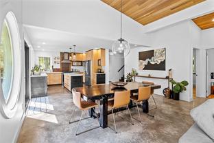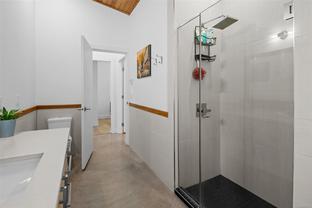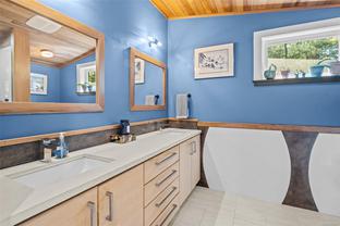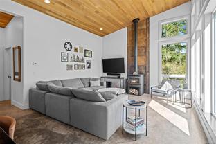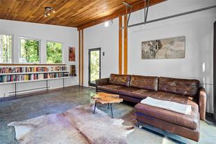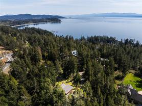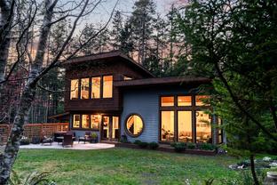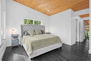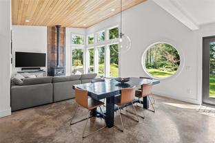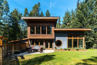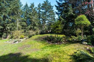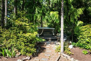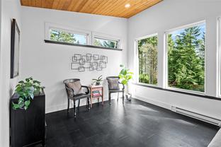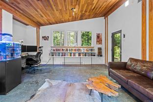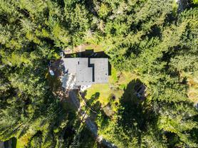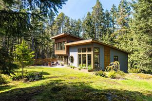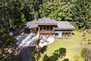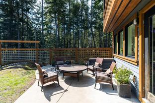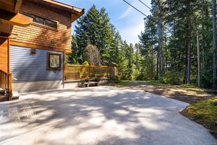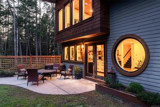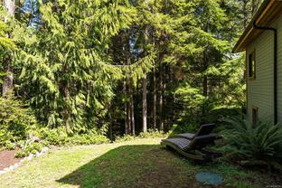 ABSOLUTELY STUNNING! Architecturally inspired & luxuriously finished West Coast Contemporary 3 bed + office, 2 bath, 2,109sf home on private, beautifully forested & masterfully landscaped 2ac+ estate. Be impressed w/the polished concrete floors (in-floor radiant heat), plethora of custom finishing details, use of natural materials & abundance of light enhanced by airy vaulted cedar ceilings. Gourmet kitchen w/oak cabinetry, quartz counters/island & SS Bosch appls. Dining area opens thru french doors to patio. Living rm w/floor to ceiling windows & cozy woodstove. 2 generous beds w/oak floors, 4pc bath & laundry complete main lvl. Up: primary suite w/new oak floors, w-i closet, 4pc ensuite & forest views/ocean glimpses. Garage connected by breezeway is finished & perfect for an office or gym. Huge basement/crawlspace (6'10"-0' ht). Beautiful yard w/custom fencing, garden beds, shrubs & flowers + hot tub! A rare find! (Lot size = "Private Yard Area" + bldg footprint from Strata Plan)