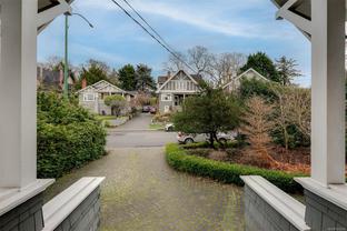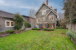 This exquisite 1912 Oak Bay classic renovated to blend old-world charm with modern luxury. You'll find it ideally located, close to the beach, Oak Bay Village's Penny Farthing, shops and excellent schools. The home offers the perfect family layout with 3 bedrooms upstairs and a large bathroom, with an additional bedroom/suite downstairs with kitchen area, laundry and bathroom. The main level features soaring 9 ft ceilings, refinished hardwood floors and flows seamlessly from the gourmet kitchen overlooking the backyard to a dining area, a bright eating area into a separate family room. There's also a sun-drenched living area bathed in natural light. Stunning details abound, including beamed ceilings, extensive built-ins, and two fireplaces, one with a custom mantle. Outside, there's a west-facing deck overlooking the fully fenced yard with a charming detached studio perfect for hobbies or a home office. Updates include a newer roof and windows, plus gas forced air heat.