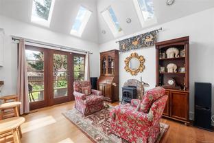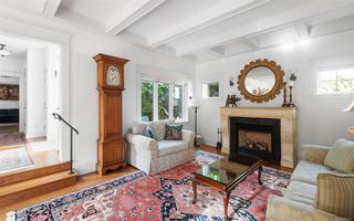 Tuscan-inspired elegant home just steps to historic Oak Bay Village. Built in 2002, this exquisite residence offers 3,242 sq/ft of refined living. The main level features a beautiful character Living Room w/a cozy Gas FP, a wonderful Great room w/15'8" ceilings, a luxurious chef's kitchen & charming family room w/2nd Gas FP. Abundant natural light and a seamless flow out to your fenced and private rear yard will surely impress, while a spacious Primary suite nicely completes the main! Upstairs offers three well-appointed bedrooms (1 no closet), while the lower level includes a large rec room, dedicated Italian wine area w/a large Media room/workspace & 4th bath. Enjoy the warmth, charm, quality finishes and thoughtful design throughout. A detached garage with rear laneway access provides added convenience. Located on a beautifully landscaped lot in one of Oak Bay’s most desirable neighbourhoods—just a short stroll to shops, restaurants, schools & Willows Beach! A definite must see!