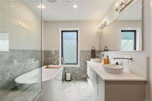 Experience luxury living in this 4 bed, 4 bath home spanning over 2500 sf. Enjoy stunning hardwood, tile & carpet flooring, quartz counters, custom millwork & unique tile work throughout creating a timeless and sophisticated feel. On the main level find an open-concept modern kitchen boasting a luxury appliance package sure to impress any culinary enthusiast. The upper level features 3 bedrooms including a primary suite with a spa-inspired ensuite, heated tile flooring, a freestanding tub & walk-in shower. The lower-level offers a family room, a fourth bedroom and bathroom and finished storage area. Equipped with Control 4 Automated Home Technology, A/C and sound system throughout ensuring you have optimal comfort and convenience at all times. Outside, find a detached garage and a well designed low maintenance yard. Within walking distance of parks, schools & beaches, this home is equipped for your family needs with impeccable design & unbeatable location. Schedule your viewing today!