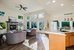 Cozy, charming and beautifully maintained, this 3 bed, 3 bath home offers 2,100sqft of comfortable living on a quiet no-through street in a welcoming family neighbourhood.The sunny west-facing backyard features mature, lush landscaping and a private 274 sqft patio—ideal for relaxing and BBQs. The open-concept layout includes vaulted ceilings, large windows, a gas fireplace, a main floor bedroom with full bath, laundry and kitchen closet pantry. Upstairs are two spacious bedrooms and two more bathrooms. Updates include appliances, granite countertops, hot water on demand, heat pump, blinds, fresh paint inside and out, artificial turf, and more. Enjoy a triple driveway, double garage with storage and EV charger, and full crawlspace for additional storage. Steps to parks, minutes to schools, shopping and amenities with Bear Mountain Resort - golf, spa, dining, tennis and fitness just a quick drive or walk up the mountain. A warm, welcoming home ready for new memories to be made!