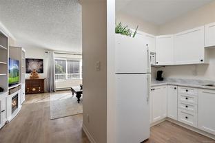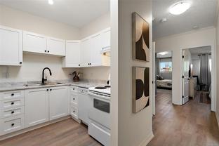 Beautifully renovated & well maintained 2 bed one-bath condo offering a spacious layout & a desirable walkable lifestyle just blocks from ocean views at Saxe Point & Macaulay Point! Enjoy the convenience of the Westbay Walkway leading you to downtown in minutes, quick access to the highway for weekend getaways & close proximity to parks, public transit, a rec centre, excellent schools & three nearby grocery stores. This bright unit features nearly 9’ ceilings, crown & base moldings, skylights in the kitchen & bathroom allowing an abundance of natural light, newer bathroom & flooring, brand-new kitchen counters & a newer hot water tank. Additional highlights include in-suite laundry + shared laundry, a bonus storage space downstairs, 1 parking stall, 2 separate entrances on 2 stories, and a shared outdoor common area patio. Priced to sell now!