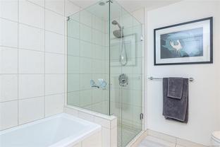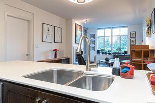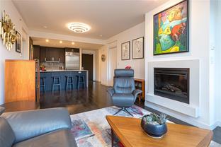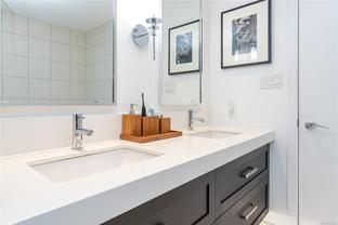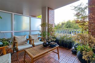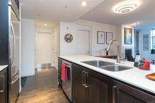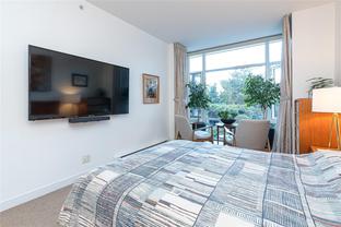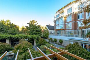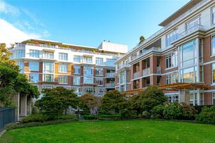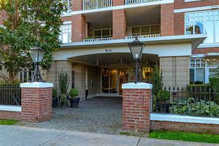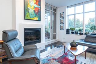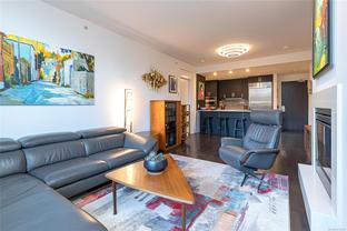 The “Chelsea” is one of the most desirable luxury steel and concrete condo buildings in Victoria! There’s no substitute for quality which is evident at every turn. Exceptional layout, this condo is truly an OASIS in the middle of the city! Extremely quiet, west facing, and overlooking a meticulously maintained lush and a private courtyard garden. Two generously sized bedrooms separated by an open and spacious living plan with ~9ft ceilings. The kitchen and a pleasure to cook complete with quartz countertops, KitchenAid stainless steel appliances, plus plenty of cabinet & counter space (even a newer garburator!). Some other features include classy ebony engineered hardwood floors, TWO underground secure parking spots (EV-Ready), storage locker, peaceful covered deck with wooden tiles, new washer/dryer, cozy electric fireplace, and floor-to-ceiling thermal windows. This extremely well-run Chelsea building also offers a private gym for residents, a lounge, and caretaker. The location is superb – just a short walk or cycle to the heart of Downtown Victoria, Cook Street Village, Beacon Hill Park, Inner Harbour, and Dallas Rd Waterfront. 2 pets OK and rentals are permitted. A rare find and outstanding value in today’s market. This one will not last long! Call your realtor today for a quick showing.
