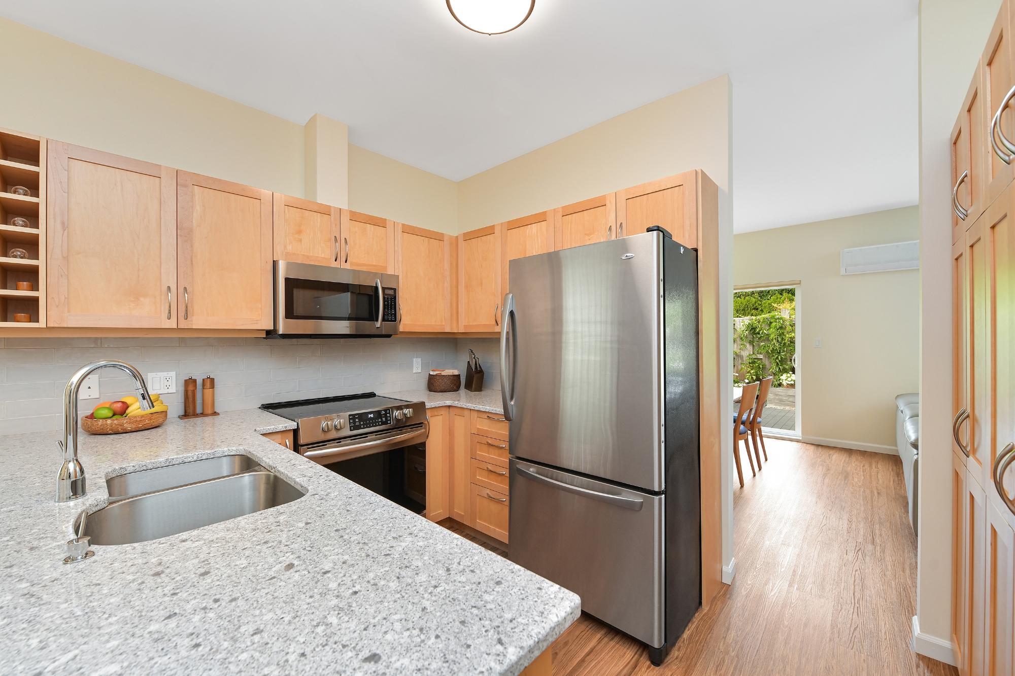 Steps from the picturesque village of Saanichton, on a quiet street, this spacious 3Bdr/3Bth, substantially updated End-Unit townhome has it all! Meticulously maintained, in a highly walkable neighbourhood, this townhome is allowed 2 pets & boasts a Main-Level Primary Bedroom, Ensuite with walk-in shower, heat-pump, double garage, security system, & fenced patio with garden. The kitchen features stone countertops, an eating nook, wine rack, updated appliances, & recently additional Maple cabinets. Bathrooms have been updated with new vanities, toilets, mirrors & hardware. Overlooking the private garden, the main level has 9ft ceilings and the living area has a 55” wall-mounted Samsung Frame TV with sound system. Both upper Bedrooms have corner windows — one with a large walk-in closet. There’s also a sitting area upstairs, with a beautiful picture window, and a huge unfinished storage area. Recently added hard-surface floors & fresh paint makes the home feel new! Quick possession is possible!