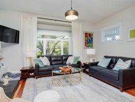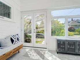 This charming 1912 character home is located close to Oak Bay Ave, RJH, Rec Centre, schools & parks.This beautifully renovated 6-bed, 2-bath home offers timeless elegance, modern updates & fab location.Stunning curb appeal & welcoming sunroom leading into hallway & L/R featuring natural gas F/P & large, bright pop-out window, beautiful D/R with leaded glass, delightful updated kit with S/S appl, lots of counter space & direct access to gorgeous deck & landscaped b/yard oasis.Main also offers 2 beds & 4 pce, the upper has 3rd bed & bright family/flexi space.Lower has 4th bed, laundry, storage + renovated 2 bed in-law with great finishings throughout, sep entr & laundry.Tons of updates since 2019-roof, windows, furnace, gas F/P, HW on demand, siding, perimeter drains & more!Fully f/yard features lush garden with mature perennials, trees & stone patio, perfect space for entertaining/relaxation.This home offers incredible flexibility for families, multi-generational living, or much more!