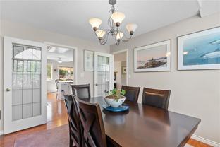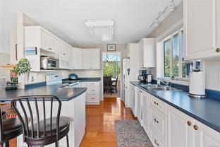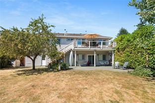 Welcome to this charming home on a quiet street in beautiful Sidney by the Sea. Featuring a bright, above-ground one-bedroom suite that serves as an ideal mortgage helper, this move-in-ready property offers flexibility for families or investors. Enjoy morning sun on the spacious deck off the kitchen, overlooking a fully fenced, flat backyard perfect for children and pets. The main home includes three bedrooms plus a den, two bathrooms, an open-concept layout, a three-sided gas fireplace, and a kitchen with bar seating and a separate dining room. The primary bedroom offers a walk-in closet and ensuite bath. A full-size double garage, large mudroom with yard access, and ample parking complete the package. The natural gas forced air furnace is heat pump ready. Located close to Roberts Bay, Shoal Harbour, shopping, and dining, this home offers the best of coastal living. Call The Neal Estate Group now to book your private viewing!