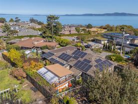 Welcome to 4490 Shore way, located on a quiet no-through road in one of Victoria’s most desirable seaside neighbourhoods. This exceptional property offers breathtaking views of Harrow Strait and the San Juan Islands, with direct beach access just steps away at Glencoe Cove Park. The main level features four bedrooms, a newer kitchen, and spacious living areas, while the lower level offers a fully self-contained three-bedroom suite—ideal for extended family or rental income. Thoughtful updates include solar panels, a 200-amp electrical service, EV charger, and a large mudroom/laundry with exterior access. The property also includes a detached yoga or martial arts studio, workshop, storage shed, and extensive parking. Gardeners will love the expansive, productive gardens featuring apple, pear, plum, peach, fig, and kiwi trees, plus a wide variety of berries, vegetables, and herbs. Nestled among waterfront estates and minutes to UVic, this unique home combines lifestyle, income potential, and an unbeatable location.