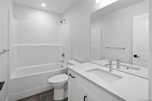 This thoughtfully designed Evelyn plan home in the sought-after Woodland Creek community offers exceptional value and comfort. Built by award-winning SC Smith Building Co. with interiors curated by Nygaard Design, it pairs timeless architecture with contemporary style. The bright, inviting kitchen features soft-close cabinetry, quartz countertops, a walk-in pantry, and premium stainless steel appliances—ideal for both daily living and entertaining. A sleek linear fireplace anchors the living room, which flows seamlessly into the dining space, creating a warm, open atmosphere. Designer lighting, heated tile floors, and an energy-efficient ductless heat pump add modern convenience throughout. Situated on a large, south-facing corner lot with a spacious side yard, this home offers extra outdoor space for relaxing, gardening, or play. Located on a quiet, no-through road near parks and schools, with all of Sooke’s amenities just minutes away. Move in before Christmas!