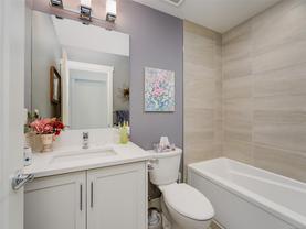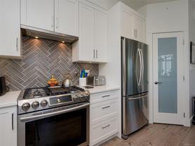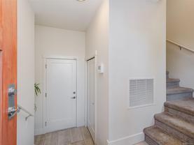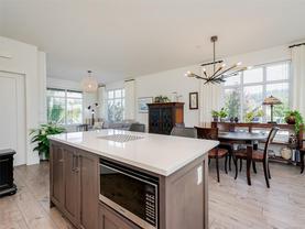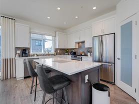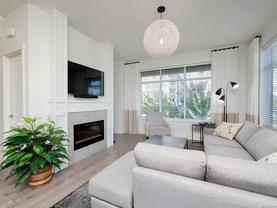 CORNER UNIT 4 bed, 3 bath townhome with 2 CAR GARAGE at the highly sought after Mariner at Royal Bay! The original Show Home with BRAND NEW HEAT PUMP! Inside you will get a true sense of quality with 9' ceilings on the main, large & open luxurious kitchen with quartz countertops, natural gas stove, stainless steel appliances, & beautiful electric fireplace with floor to ceiling feature wall! Excellent layout - 3 BEDROOMS UPSTAIRS including side by side laundry & double sink ensuite for primary bedroom. Downstairs has 4th bedroom that gives you lots of options such as home office or guest bedroom. Very well-maintained with extras such as heated 2 car garage, gas BBQ outlet, forced-air heat pump & large kitchen island. Outside you'll find a fenced private yard with covered entry & deck off kitchen. Enjoy the seaside community of Royal Bay & the Beach lands with beach side parks, trails, Royal Bay HS & the convenience of shopping at “The Commons” Retail Village Centre just steps away.