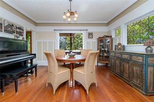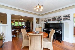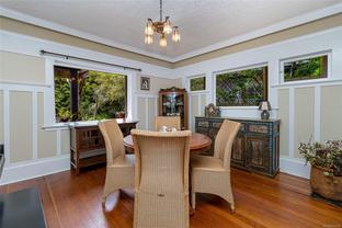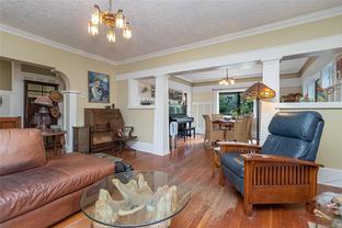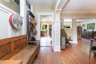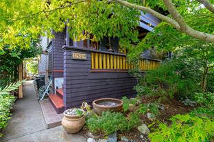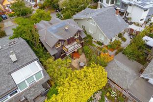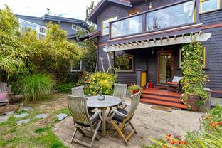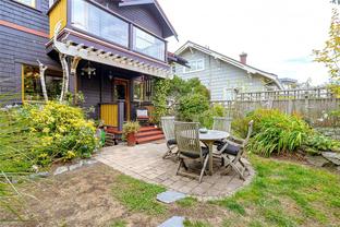 A Classic Fairfield Character Home This timeless Arts & Crafts home blends heritage charm with modern updates in a prime Fairfield location. A welcoming front porch leads to spacious living and dining areas highlighted by leaded-glass windows and rich wood detailing. The updated kitchen and deluxe bathrooms offer comfort and style. Upstairs, the bedrooms are generous, including a primary bedroom with walk-in closet, private balcony with ocean views, and full ensuite. Outdoors, the south-facing yard is a private retreat with porch deck, patio, pond, built-in gas fire pit, hot tub, and outdoor shower—ideal for relaxing or entertaining. The full lower level provides a den, laundry, and pantry. Just steps to Clover Point and the waterfront, with easy access for seaside walks and kayaking, this home offers the perfect balance of character and convenience. A Beautiful Home.