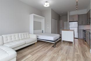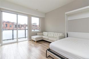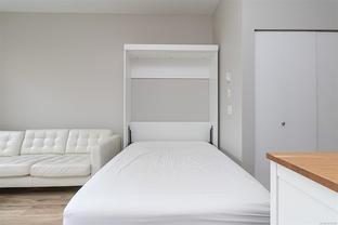 Spotless , second floor unit in the popular Abacus building. This bright, south facing, 1 bedroom unit is conveniently located and within walking distance to all that downtown Victoria has to offer. No need for a vehicle with fantastic restaurants and shops with a short stroll. You will immediately feel a sense of calm entering the open floor plan, with an abundance of natural light and over looking the historic building of Victoria. Constructed in 2017 this concrete and steel building has all the modern design features, stainless steel appliances, and custom quartz counter tops in the kitchen and bathroom. Building amenities include a secure bike storage room, common lounge, and a fully equipped gym. **Murphy bed and bed frame in bedroom are included with unit**. Great value in today's market.