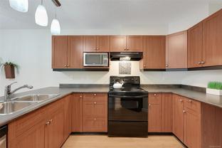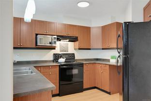 This quiet, bright and west facing 2 bedroom & 2 full bathroom condo will eventually be backing onto Langford’s new 6-acre park acquisition. Very close to highway access, and not deep into Langford. Traffic is pretty easy from here. Ruth King Elementary School is pretty much on the block. #201 offers a spacious open floor plan with bedrooms on opposite ends, each coupled with their own 4-piece bathroom. Perfect for a family home or roommate opportunity. So close to new U-Vic Campus! 5 minute walk? New paint & most light fixtures. A past update included newer laminate flooring. The primary bedroom has a 4-piece ensuite bath and the access to the covered deck. Unusually large kitchen with 3-4 bar-stool spots at the open countertop bar, where the friends & family will gather and certainly please the household chef. Stacking washer & drier are within a closet beside the main bathroom. 2 dogs – no pound limit are welcome, (or 2 cats or 1 of each), no age restrictions, BBQ’s are approved, and unrestricted rentals at this is well managed strata. At the end of Hockley Ave., there is a one-way small road access, that takes you to the front of Langford City Hall. Great Sushi restaurant within the almost adjoining parking lots, only steps away! Sabhai Thai is across the street with Dad’s Sandwiches. So many eateries and amenities that are faster to walk to than get in the car. Brown’s Social House, Tumeric Indian Cuisine, Bin 4 Burgers, Akemi Sushi, Darcy’s Pub, Starbucks. Bring your walking shoes and discover the new downtown Langford just outside your door. Plan to view today! Vacant & ready for immediate move in. Call now. Listed by Cathy Duncan & Associates Ltd 250-888-9343