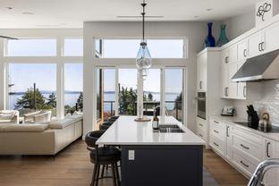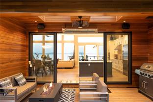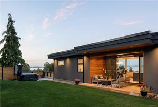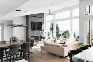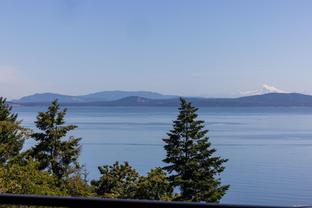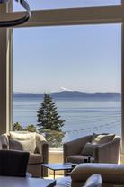 Discover refined coastal living in this 3,700+ sq ft, 3-level masterpiece with stunning ocean & mountain views. A semi-circular driveway & sculpted rock-wall gardens welcome you. Inside, grand windows & glass doors fill the space with light & frame panoramas from front & rear decks. The skylit back deck opens to a private fenced yard & tranquil garden. Unwind in the infinity hot tub overlooking the Salish Sea, North Shore peaks, & Mount Baker. A custom metal/wood/glass staircase connects elegant living areas. The great room—with dual islands & seamless indoor/outdoor flow—combines living, dining, & kitchen spaces. A bright corner office offers more breathtaking views. 4 spacious bedrooms include a secluded primary retreat with spa-style ensuite. A legal one-bedroom suite with ocean views, soundproofing & a covered deck adds flexibility. EV/solar-ready, with smart lighting pre-wiring, rooftop outlets, storage, & bonus flex room. Walk to schools, trails, & beaches. A true West-Coast gem!