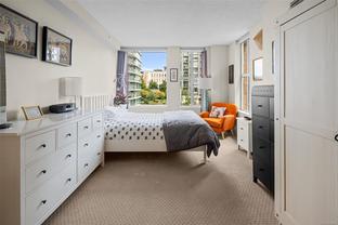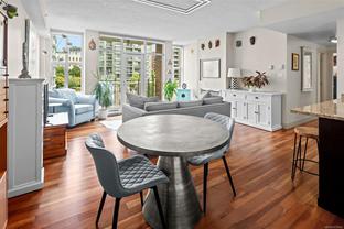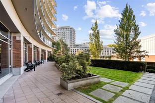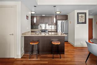 Prepare to be impressed with this meticulous luxury condo in the prestigious ARIA building. Step into a bright open floor plan showcasing gleaming engineered wood flooring, cozy gas fireplace, floor to ceiling windows framing picturesque corridor views of blue skies and elevated garden greenery. A Chef’s kitchen finished with granite countertops, richly toned cabinets, wine storage and stainless appliances including gas range. Spacious primary bedroom with accommodation space for furnishings and 4pc ensuite. Spa-inspired bathroom for guests and second bedroom. Complex amenities feature a residents lounge, fitness facility and sauna, bike storage room workshop, and underground parking. City living at its finest in the heart of the Humboldt Valley, a neighbourhood encompassing famous landmark destinations. Steps to the Inner Harbour, Beacon Hill Park, IMAX theatre, Royal BC Museum, Parliament Buildings, Restaurants, Entertainment and Shopping.
