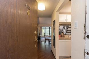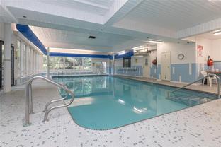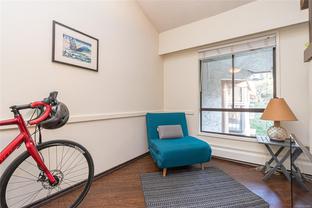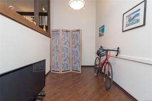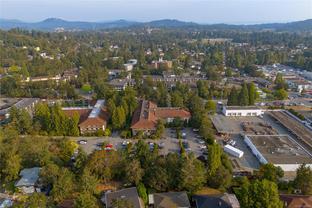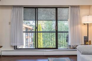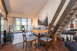 Discover this top-floor loft-style condo, a unique opportunity for buyers looking for something with character & flexibility. This suite offers multiple options for living & working or studying. The spacious loft easily accommodates a comfortable bedroom with plenty of space for a home office or reading nook. The main level features a versatile open-concept design, with a partial partition wall that creates separation in the living space. Use it as a second bedroom, a dining area, or customize it further with strata approval to suit your needs. Take in the tranquil views of mature trees, blooming rhododendrons and landscaped gardens. Royal Woods stands apart with amenities rarely found elsewhere: a heated indoor pool, hot tub, sauna, gym, games room with snooker table & ping pong, shuffleboard, library, hobby room, meeting lounge, & even exterior tennis courts. This vibrant community is set in a central location, just steps to Saanich Centre and just minutes to UVic.