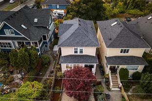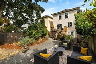 NEW LISTING! Vic West’s Most Desirable Area! Fully renovated legal duplex + 1-bed suite w fantastic revenue potential. Three suites: #914 main suite w 3 bed, 2 full bath, ~9 ft ceilings; den, laundry, +1 bed suite w its sep entrance. New laminate & tile flrs, white paint w black accents, custom lighting, waffle up/down blinds. Main kitchen w custom black walnut cabinetry, stone counter, under-mount sink, built-in gas range. Main bath w radiant flrs & designer fixtures. #916 unit adds strong income potential: 3 beds, bath, kitchen, living rm + laundry, newer flrs. MAJOR UPDATES: new water main, perimeter drain, sump pump 2017; windows; gas; hot water on demand; sheared walls/sides; roof 12 yrs; dual hydro meters. Professionally landscaped, drought proof & mow-free yard by Fi Campbell. Deck, fenced & gated yard, shed/studio, fire pit, lounge & dining area, storage under deck. Immediate access to parks, waterfront walkways, Galloping Goose Trail. Fry’s Bakery & Market Garden. See Brochure