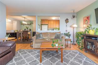 What a fantastic location! Close to the infamous Cook St Village, Beacon Hill Park, Dallas Rd. & downtown. This updated 1120 sq. ft. home is a top floor, corner unit & includes 2 bedrooms, with brand new 4piece ensuite plus a 2piece powder room. Enjoy the bright outlook year round from 2 large east facing sunrooms. There is hardwood throughout living areas & carpet in bedrooms. Improvements include baseboard heaters, light fixtures, paint, trim/baseboards and more. Pass-throughs from entry to dining room & living room to kitchen makes this an open, bright living plan. The kitchen features wood cabinets & opens to a family size dinning area. The master bedroom, large enough for a king bed, has a new 4 pc ensuite & large sunroom. You will find a double entry closet, 2 more hall closets and a convenient same-floor separate storage room for your needs. There is 1 common space parking with plenty of street parking available. The common laundry is free and well maintained. Pet friendly.