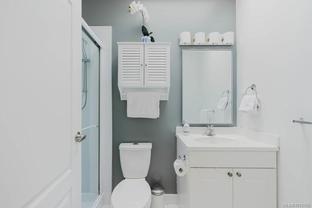 Pet owners rejoice: 3 pets allowed with NO size restrictions! You will fall in love with this bright, top floor corner unit with southern exposure on the back of the building. With 9' ceilings, 2 skylights and a spacious kitchen, this penthouse condo feels more like a home. Thoughtful layout with nice separation of the 2 bedrooms for privacy. The primary bedroom fits a king size bed with room for furniture, plus an ensuite and two closets. The 2nd spacious bedroom has a cheater ensuite with bathtub, large window and closet. The dedicated dining area is bright and welcoming. With a gas fireplace (included in strata fees), in-suite laundry, private balcony, underground secure parking with TWO spots and a storage locker, this unit has it all! Ideally located in Oaklands, on a bus route to Camosun College and UVic, within walking distance to Hillside Mall, local parks and only a 5 minute drive to Downtown Victoria. This is a very special property which you must come see for yourself!