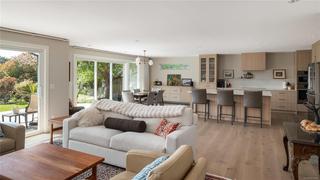 Tucked into a quiet cul-de-sac just steps from Gyro Beach, this single-level home in Cadboro Bay offers the ultimate in West Coast living. Extensively renovated by Point Break Developments with over $600,000 in updates, this 3-bedroom, 3-bathroom rancher seamlessly blends modern design with timeless comfort. The open-concept layout features 9' ceilings, wide-plank flooring, and a gourmet kitchen with quartz counters, custom cabinetry, and high-end appliances. The spacious primary bedroom features a walk-in closet and a 3-piece ensuite. Outside, enjoy a beautifully landscaped, fully fenced 10,056 sq ft lot with a large patio—perfect for entertaining. The 490 sq ft double garage provides ample storage. Just a short stroll to the Village, coffee shops, tennis courts, and UVic. Whether you're downsizing or looking for beachside tranquillity, this is a rare opportunity in one of Victoria’s most beloved neighbourhoods.