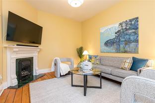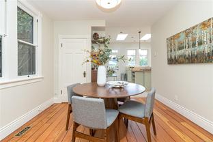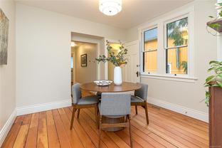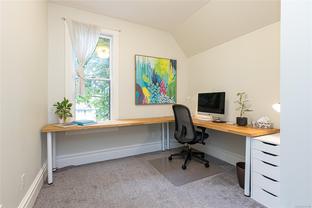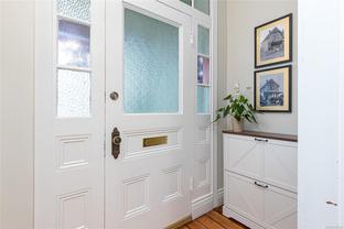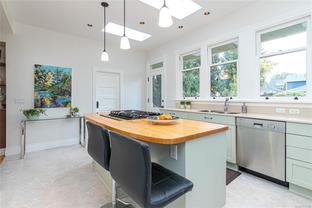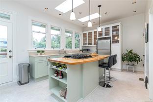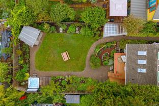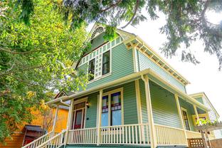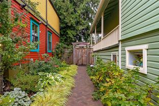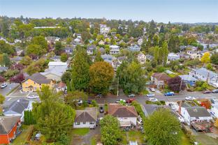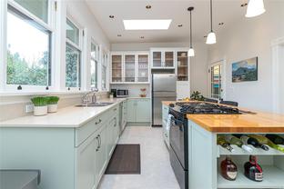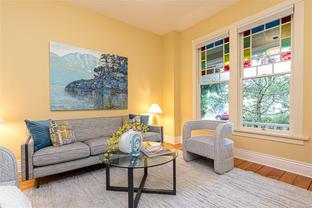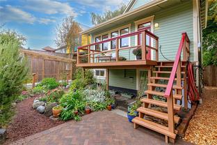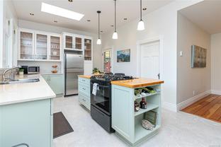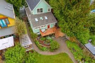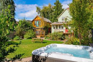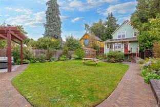 Welcome to 1347 Vining Street, a captivating heritage home tucked away on a quiet, tree-lined street in the heart of Fernwood. Just one block from Victoria High School and Fernwood Village, this residence offers both charm and privacy on a generous 0.16-acre lot surrounded by mature trees. Inside, the home beautifully blends timeless character with thoughtful modern updates. Heritage features such as high ceilings and original detailing are complemented by recent upgrades completed over the past five years: fully finished basement, refinished hardwood floors, new carpeting upstairs, updated lighting, and fresh interior and exterior paint. The newly upgraded chef’s kitchen boasts a large island with a breakfast bar and stunning south-facing views over the backyard. The upper level includes a sunlit primary bedroom with ensuite, a second bedroom, and a den or third bedroom. On the lower level, you’ll find three additional bedrooms, including a flexible one- or two-bedroom suite with kitchenette, currently rented at market value. Outside, a professionally landscaped backyard oasis awaits. Enjoy a hot tub, custom decks, pergola, greenhouse, new fencing, brick pathways, irrigation system, and a variety of established perennial and fruit trees. Practical updates include new perimeter drains and new roof shingles on most of the roof. This rare Fernwood gem offers classic style, extensive upgrades, and an unbeatable location—truly move-in ready.
