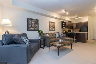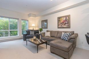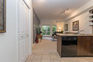 Fabulous bright, open, and spacious 2 bdrm/2 bath home on the quiet side of the building overlooking the trees. Built in 2007, the open concept plan has over height ceilings, kitchen with breakfast bar, spacious living room and french door to the balcony that sits well above ground level. Lrg primary bdrm with walk in closet and ensuite with soaker tub/shower. The 2nd bdrm for guests doubles as home office plus 4 pc guest bath. Insuite laundry with room for storage. 2 cats welcome, or 1 cat/1 dog with no size restrictions. Secure underground parking and separate storage. Well maintained and managed building with common meeting room. Great location, just minutes to shopping at Uptown, 10 minutes downtown and easy access to major routes in and out of town. Rentals permitted and no age restrictions.
