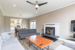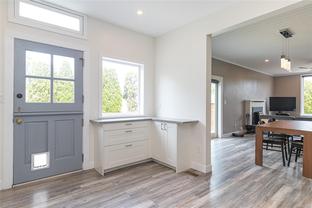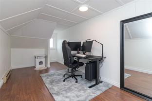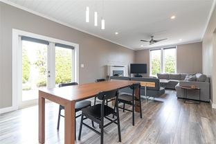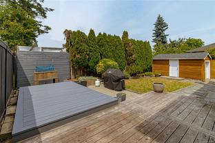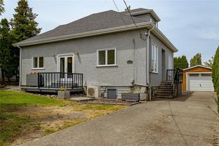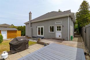 All maintenance faithfully adhered to with supporting documents available! Two full bathrooms on each floor, four very good size bedrooms, recent very tidy renovations and a super convenient location. High ceilings, wide hallways, very attractive lighting as well. Recent updates include: Heat pump, roof, entry porch, metal railings, vinyl decking, windows, a spa inspired main floor bath, beautiful flooring, wood stove insert (heat with wood during the wet, windy and chilly winter months!) A 2025 chimney sweep/fireplace inspection, designer kitchen featuring quartz countertops and slow close cabinetry, high end LG laundry equipment, professional house cleaning, professional landscape tune up. French doors lead to a level and private backyard, ideal for al fresco entertaining with new paint on rear deck. Tech talk! Cat6 ethernet wiring (gigabit speed) and Telus fibre cable connected. Feel confident living peacefully in this gem of a home, one of the oldest in the area by far. Accessible crawl space, high ceilings, open concept living, a detached and insulated (with power) single garage, level yard and plenty of parking. Currently, direct bus to UVIC. Quick possession is possible as well. You will love this home that def feels much larger than it's approx. 2000 square feet. Amazing! Call now for a private tour.
