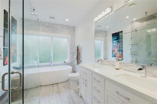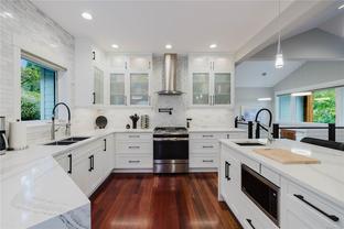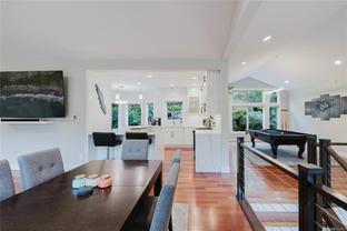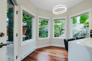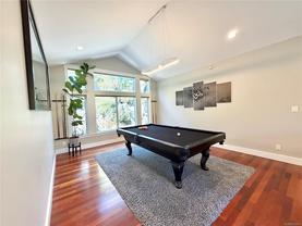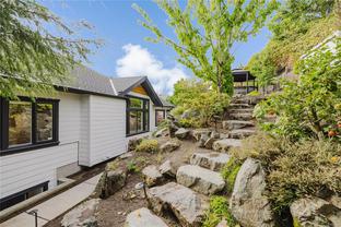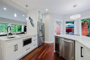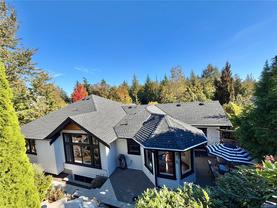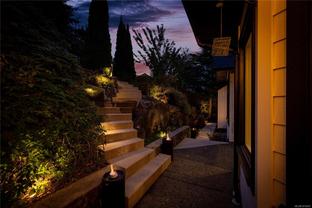Welcome home to this exquisitely renovated 4 Bed/4 Bath executive residence perched above Royal Bay. Perfectly positioned across from Promenade Park, within walking distance to the vibrant seaside community below. No detail has been overlooked in the extensive renovations including a new roof with 40-year warranty, fresh exterior paint, & fully landscaped private grounds, perfect for entertaining. Inside, a double-height foyer with south-facing windows floods the home with natural light. The main living area features vaulted ceilings and a dramatic floor-to-ceiling fireplace. The chef’s kitchen is a showpiece with custom cabinetry and quartz counters, seamlessly flowing to a private fenced patio and backyard retreat featuring a hot tub & a cozy firepit. Also on the main is a spacious dining room and an elegant primary suite with its spa-inspired ensuite. The lower level includes a versatile recreation lounge and wet bar, a double car garage, and a vacant, fully self-contained suite.
