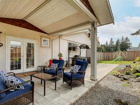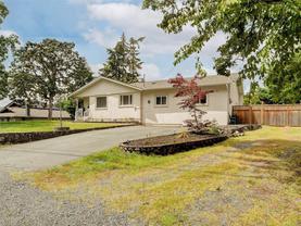 Rancher living at its best! This rare ONE-LEVEL home offers nearly 2,000 sqft of bright and functional living space, set on a sunny 11,700+ sqft. lot. Inside, you're welcomed by a cozy living space with hardwood floors, large windows, and a fireplace that anchors the main gathering space. The layout is intentional, with the primary and second bedrooms together on one side of the home, while two additional bedrooms are set alongside the family room on the opposite wing—giving a sense of separation without losing connection to the rest of the home. The updated kitchen offers plenty of cabinetry and a picture window overlooking the rear yard with an adjoining dining area which connects seamlessly to the main living spaces. The family room features high ceilings, recessed lighting, and French doors that open directly to the outdoor space. From there, step into a fully fenced thoughtfully designed rear yard with a covered patio, an elevated deck, landscaped gardens, and tons of green space for kids, pets, or your imagination! Enjoy generous parking with room for multiple vehicles. BONUS: RV/Boat Parking, large crawl space, and storage shed. Ideally situated near all of Langford's best amenities with schools, shops, and parks just minutes from your front door. This home has the perfect blend of comfort, practicality, and lifestyle in a rare rancher package. Book your showing today!