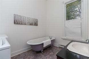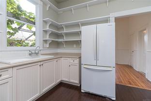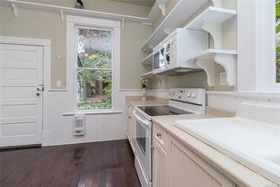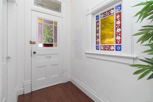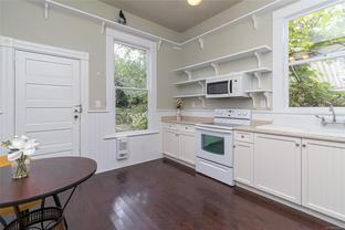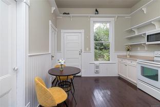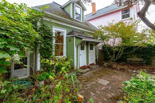 This lovely home is full of charm and opportunity, offering timeless features like stained glass accents and heritage-style details throughout. Flexible in design, it can serve as a full two-story residence or be configured with a suite on each floor. The main level features a spacious kitchen, beautiful hardwood floors, one bedroom, and a combined bathroom/laundry room. Upstairs, you'll find a second bedroom, a full bathroom, a bright kitchenette, and skylights that flood the space with natural light, creating a warm and cheerful atmosphere. Step outside to enjoy the tranquil back garden, complete with a serene pond, raised vegetable beds, and a greenhouse—perfect for cultivating your gardening dreams. Located in the highly sought-after Fernwood community, you're just steps away from Kings Park, Royal Athletic Park, local coffee shops, and a short walk to the vibrant downtown core. Don’t miss your chance to call this unique and versatile property, home!