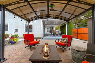 This exceptional 4-bed, 3-full-bath home has been tastefully updated & is perfectly designed for modern living & entertaining. Step inside to discover a large, spacious kitchen & bright eating area with bay windows. The open living area features built-ins, crown molding, a cozy gas fireplace & wet bar, creating the ideal setting for gatherings. The home shines with updates throughout, including hardwood flooring, renovated bathrooms & newer roof. Unwind in the generous primary, boasting a large ensuite & walk-in closet—your private sanctuary. Outside, enjoy seamless indoor-outdoor living with a redone backyard patio & garden, complete with a sprinkler system. Car enthusiasts & hobbyists will love the huge double car garage offering extra space for storage, plus plumbing & electrical for potential future use. With abundant parking, this home easily accommodates all your vehicles & toys, including an RV hookup outside. Centrally located conveniently in Saanich West, you are close to everything including Camosun Interurban.