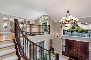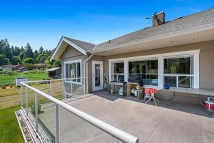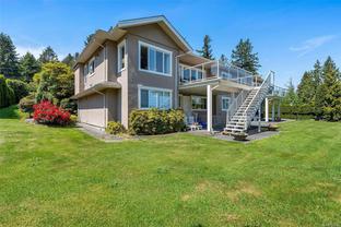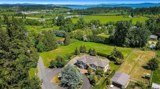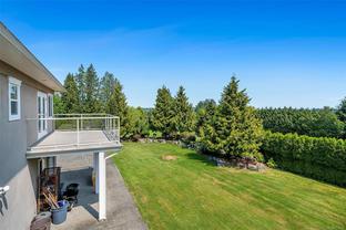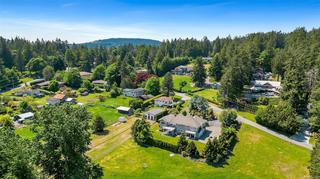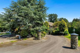CORDOVA BAY ACREAGE! This custom 4,792 sq/ft home sits on a private 1.89-acre property surrounded by estate homes, hobby farms, and equestrian properties. The level lot (approx. 300ft x 300ft) features a circular driveway and grand estate-style entry, set well back from the road for exceptional privacy. The spacious two-level layout offers 7 bedrooms and 5 bathrooms, including a self-contained 2-bedroom suite—ideal for extended family or rental income. Inside, a dramatic open staircase and vaulted ceilings create an impressive welcome. The main level features a chef’s kitchen, breakfast area, family room opening to a large deck, formal dining and living rooms, plus a media/rec room, fifth bedroom, and laundry. Upstairs are 4 generous bedrooms, 2 with ensuites and private balconies. A triple garage provides ample space for vehicles, gym, or storage, plus a huge crawlspace adds even more storage potential. A rare private estate opportunity in sought-after Cordova Bay!