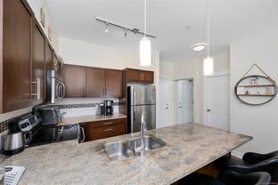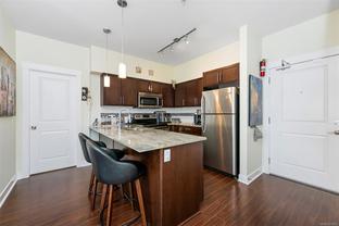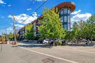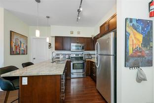 Open House Saturday 11-1pm. Welcome to top-floor living at The Granderson! This immaculate 2-bed, 2-bath suite offers a bright, open layout perfect for modern living. The kitchen shines with granite countertops and an eating bar, flowing seamlessly to a living area and sundeck overlooking Bear Mountain. The smart floor plan separates the bedrooms for maximum privacy. Your backyard is the famous Galloping Goose trail, and you're just a stroll away from the Royal Colwood Golf Course and the heart of downtown Langford. This central location puts you minutes from Westshore Town Centre, dining, and parks. The building is pet-friendly, rental-friendly, and allows BBQs. Secure underground parking and a separate storage locker complete this perfect package. Don't miss this fantastic opportunity for investors or first-time buyers!