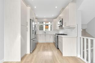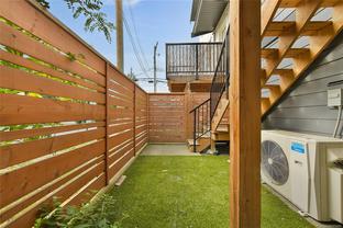 Welcome to The Slopes! Discover the perfect blend of style, comfort, and versatility in this beautifully designed 3-bedroom townhome in Happy Valley, where modern finishes and thoughtful upgrades create a truly elevated living experience. With 9’ ceilings on the main level, oversized windows, and an open-concept layout, the space feels bright and inviting, complemented by wide plank flooring and a sleek electric fireplace. EV charger installed in garage, heat pump, and on-demand hot water ensure comfort and efficiency! The chef-inspired kitchen boasts quartz countertops, tile backsplash, under-cabinet lighting, and stainless steel appliances. The south facing deck has steps down to a fully fenced yard with low maintenance turf. Upstairs is the vaulted-ceiling primary bedroom complete with a spa-like ensuite with floating vanity and motion lighting, additional bedroom, the washer/dryer and 3-piece washroom. The downstairs bedroom adds flexibility with direct access to the backyard!Welcome to The Slopes, a dynamic and friendly community of only 16 townhouses! The modern and stylish 2 bedroom + den home was designed with an open floorplan, high 9‘ ceilings and large windows in its living area, allowing natural light to flood into this bright and inviting space. For those cold days make yourself cozy with the modern 50” electric fireplace in the living room. The kitchen offers lots of storage cabinets, quartz counters, tile backsplash, undercabinet lighting & stainless steel appliances. The master bedroom upstairs boasts a stunning vaulted ceiling and a 4-piece ensuite bathroom with a floating vanity with motion lights below. The owners selected upgraded applinces and had the developer install: dimmable pot lights all over the house, an EV charger and a heat pump… perfect for the summer hot days! The south facing backyard offers a sunny deck and a fenced patio ideal to enjoy the warm summer evenings.