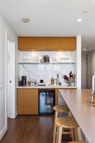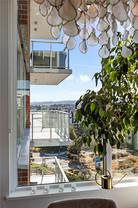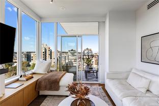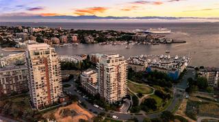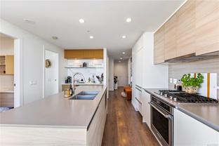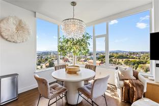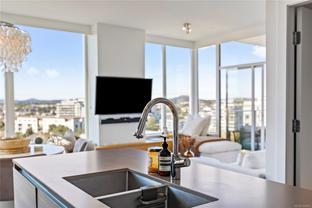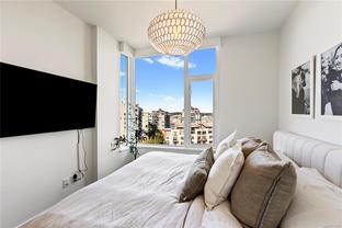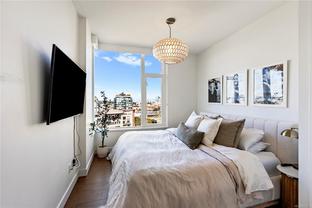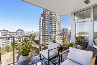 Welcome to Encore, a premier steel and concrete residence by BOSA. This bright, updated 9th-floor corner suite features dual wrap-around windows facing east, north, and west, bathing the home in natural light. Experience breathtaking views of crimson sunrises to golden sunsets over the mountain, city and ocean, including the iconic Legislative Buildings, from your spacious balcony. Enjoy easy access to cafés, entertainment, parks, and waterfront paths This 2 bed/2 bath condo offers a seamless open-concept living, dining, and kitchen space, highlighted by a gas cooktop, built-in appliances, and a custom bar. Additional conveniences include secure underground parking and storage locker. Residents enjoy a wealth of resort-style amenities: an outdoor pool with heated cabanas, a stylish poolside indoor lounge, a fully equipped fitness centre, rentable guest suite, off-leash dog park, secure bike storage rooms, and the convenience of a full-time concierge.