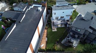 Welcome to this stunning custom-built modern home in the Westshore featuring 4 bedrooms and 4 bathrooms, including a tenanted legal one-bedroom garden suite. Tucked away at the end of a quiet cul-de-sac, just a 10-minute walk to downtown Langford and the E&N Trail, this bright, south-facing three-level home offers 9-foot ceilings, expansive windows, and an open-concept main floor with a modern kitchen featuring a gas range and 36-inch fridge. Step out to a large, sun-drenched deck overlooking a private, fully fenced backyard with lush perennial gardens and a children’s playhouse. Upstairs are three bedrooms, laundry room, and a spacious primary suite with walk-in closet + ensuite w/radiant in-floor heating. The legal suite includes 9' ceilings, in-suite laundry room, and a private outdoor space. Addl features: gas heat pump with A/C, 400 sqft garage, large storage room, and RV parking. A modern retreat in a sought-after family neighbourhood. Come have a look!