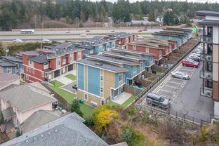 Welcome to this beautifully designed 2020 corner townhome in the sought-after Langford-Millstream neighbourhood. Offering a modern layout with an abundance of natural light, this home is perfect for families, professionals, and investors alike. The main level features an open-concept living space with kitchen, dining, and living areas that flow seamlessly together. The stylish kitchen boasts a large island, tiled backsplash, gas stove, and generous storage and counter space. From here, step out to the west-facing private patio—ideal for entertaining—with a gas BBQ hookup and a fenced yard, perfect for kids and pets. Upstairs, the spacious primary suite impresses with vaulted ceilings, a walk-in closet, and a modern ensuite. On the lower level, you’ll find a double-length garage that fits two vehicles, plus an additional undeveloped space that can be customized into an office, den, guest bedroom, or hobby area. The side yard adjacent to the entrance can be fenced off and incorporated into the lot, as permission has been granted. This additional space is suitable for storage sheds or can be utilized as a children's play area or for outdoor entertainment. Located close to schools, parks, and outdoor activities, with quick access to downtown Victoria and minutes to Millstream Village, Costco, and Home Depot. This family-friendly complex allows pets and rentals—making it a smart choice whether you’re buying to live or invest!
