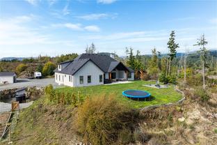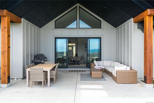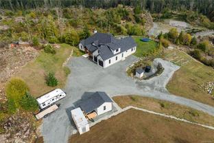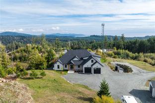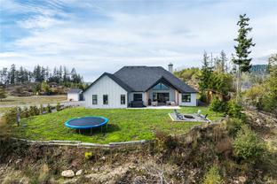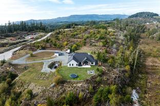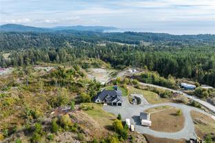 Builder’s Own West Coast Masterpiece! First time to market for this stunning 3BD, 3BA + den rancher offering nearly 2,700sf of luxurious single-level living on a private 10-acre estate lot. Main living areas showcase sweeping views of the Sooke Hills, Secretary Island & Olympic Mountains beyond! Built with exceptional craftsmanship & modern West Coast flair, the contemporary-styled home features polished concrete floors (radiant heat ready), heat pump for efficient comfort, & soaring vaulted ceilings with striking wood-burning FP. Designer kitchen boasts premium appliance package, entertainment-sized island & butler’s pantry. Retreat to your generous primary bedroom with spa-inspired ensuite, WIC & direct laundry access. Upstairs, the 586sf self-contained 1BD/1BA legal suite is ideal for family, guests, or income. Oversized garage, detached shed, & ample parking for all the toys. Covered patio for year-round enjoyment. A rare combination of style, space & setting. This home has it all!