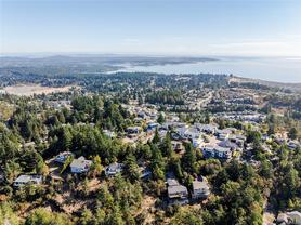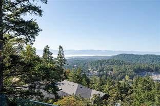 Perched atop Triangle Mountain on a quiet cul-de-sac, this updated 3 bed / 3 bath home offers 2,206 sqft of living space on a rare 25,000+ sqft lot w/ sweeping ocean & Olympic Mountain views. Soaring vaulted ceilings, oversized Pella windows & skylights flood the main level w/ natural light. Step onto the expansive 1,000 sqft fiberglass deck w/ seamless glass railings—perfect for year-round sunsets & panoramic vistas. The main floor features a spacious primary suite, walk-in closet & ensuite, plus a renovated Urbana kitchen w/ SS appliances (including beverage fridge), oversized island & abundant cabinetry. Downstairs, two guest bedrooms, a full bath, versatile family/media room & a storage room (convertible to a 4th bedroom) provide excellent flexibility. Highlights include a large detached garage, wood-burning fireplaces on both levels, in-floor heating in most rooms, a lower deck plumbed for a hot tub & access to Colwood-owned land below with trails & stairs for outdoor exploration.