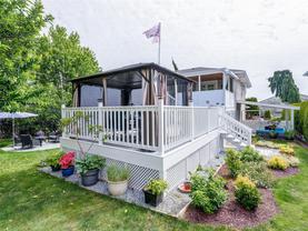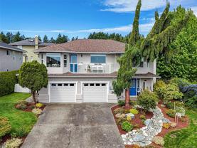 QUICK POSSESSION POSSIBLE. Wake up to sunrise views over Mt. Baker and Island View Inlet, with English Meadow Park just steps away. This 5-bedroom, 3-bathroom home combines elegance and comfort with open-concept living, a sleek gas fireplace, formal dining, and a family room—all with engineered hardwood. The gourmet kitchen boasts granite counters, a pull-out pantry, coffee station, 2-seat island, and breakfast nook with panoramic views. French doors open to multi-level decks with a gas BBQ hookup and gazebo-covered dining. The spacious primary suite offers a walk-in closet and spa-inspired ensuite with soaker tub, no-step shower, heated floors, sensor lighting, and skylight, while the main bath also features a no-step shower. A bright 2-bedroom suite with private entry and patio is ideal for an extended family. Professionally landscaped with irrigation and a double garage. Large crawl space.