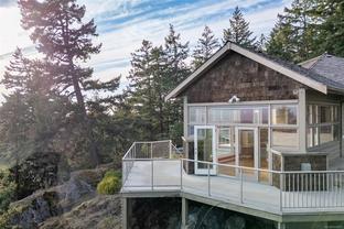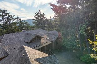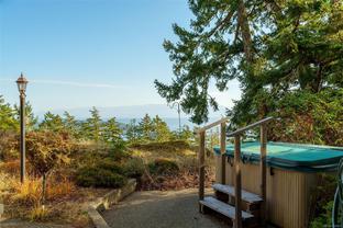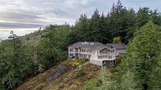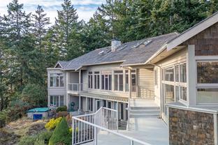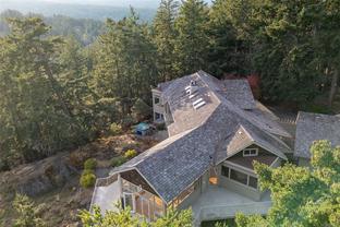Perched atop Mount Matheson, this custom-built, architecturally designed home features 5 bedrooms, 4 bathrooms, and breathtaking ocean views. Spanning 5090 sq. ft., it's the perfect blend of family living and entertaining. Step inside and be awestruck by southern vistas encompassing Beecher Bay, the Salish Sea, and the snow-capped Olympic Mountains. The architect's focus on maximizing views is evident in every room, with soaring 17 ft. vaulted ceilings, skylights, and floor-to-ceiling windows creating a light-filled sanctuary. The oversized kitchen is an entertainer's dream, featuring granite counters and a large pantry. Your luxurious primary suite boasts a 7-piece ensuite and a spacious walk-in closet. The view-filled lower level includes three additional bedrooms, a wine cellar, and a rec room with hot tub access. Recent upgrades include a brand-new hot water tank (2025), two heat pumps, two 200-amp electrical panels, a 20 kW backup generator, and a 3-car heated and insulated garage.