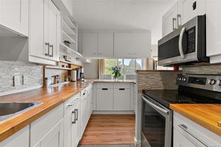 This unique two storey, three bedroom condo is arguably the best unit in the building! The unit is a quiet, top floor home filled with sunlight - soak up the evening sun on your private, west facing deck. Inside, you’ll find thoughtful upgrades throughout, including a chef’s kitchen, plenty of additional storage, and the unit is fiber optic ready. The building is cat and small-bird friendly, BBQs are permitted, and the neighbours are quiet and respectful. Enjoy a designated parking space, secure storage for bikes and gear, and convenient access to neighbourhood amenities. Just a 5 minute walk to Macaulay Beach and Saxe Point Park, this home is also close to schools, restaurants, shops, and transit. A perfect mix of space, privacy, and community in a walkable, family-friendly neighbourhood. In suite laundry is allowed by the strata and may be installed by the new owner if desired, or utilize the new and cost effective shared laundry. The home is move in ready, don't delay your viewing!