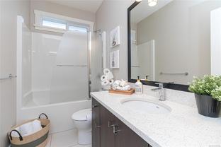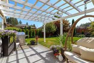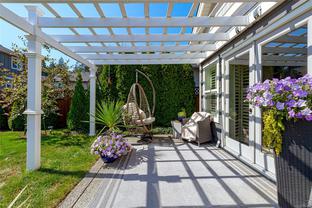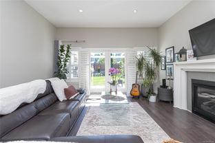 OH Saturday 2-4 Welcome to this beautifully maintained 3-bedroom, 2-bath rancher — a rare find offering over 1,700 sq. ft. of stylish one-level living. The bright open-concept layout showcases a stunning kitchen with quartz countertops, a large island, and stainless steel appliances—perfect for entertaining. The spacious living room with cozy gas fireplace opens through French doors to a sunny, south-facing patio and private backyard with a beautiful pergola, mature landscaping, and plenty of space for gardening, pets, or outdoor gatherings. The generous primary suite offers an electric fireplace, walk-in closet, and spa-inspired 5-piece ensuite. Two additional bedrooms and a dedicated laundry room add comfort and flexibility. Additional highlights include high-end California shutters, hot water on demand, a heated double car garage, and driveway parking for four. Ideally located in a newer, family-friendly neighbourhood just steps to the Galloping Goose Trail and minutes to Red Barn Market, schools, and Olympic View Golf Course.