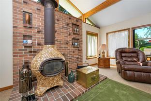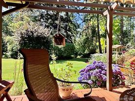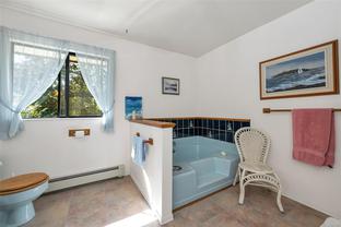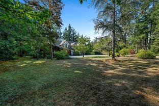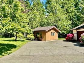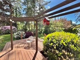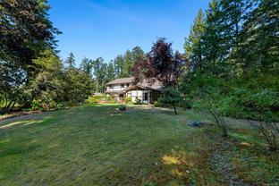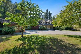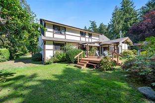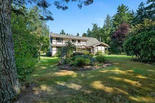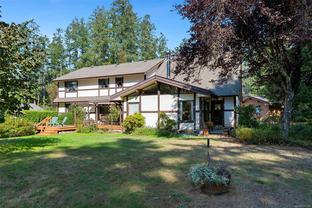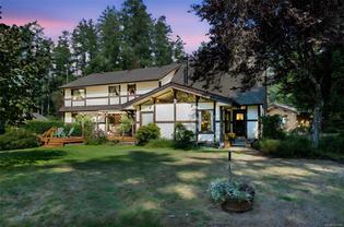 Step into timeless elegance with this beautiful Tudor-style home, perfectly situated on .96 acres of peaceful, private land. Nestled in a quiet sought-after area, this one-of-a-kind property offers the ideal blend of classic character and modern comfort.Featuring 4 bedrooms and 4 bathrooms, this home boasts rich architectural details including steeply pitched gables, exposed beams and leaded glass windows.Enjoy cozy evenings by the fireplace in the living room or by the unique Onyx wood stove in the family room. Large Kitchen and separate dining room allows for private dinners or you can entertain on the large south facing deck overlooking the beautiful gardens.This property offers a true escape - mature trees, including a variety of fruit trees, and a separate Art Studio (with water and power) plus enjoy the tranquility of country living just a short drive to the Airport, Ferries and Sidney - where you will enjoy unique shopping and Waterford enjoyment. A must see for serious buyers. Don't miss this rare opportunity to own a storybook home in a truly idyllic setting. Note: The HVAC system is a Heat Pump which provides both heating and cooling, as opposed to air conditioning throughout.